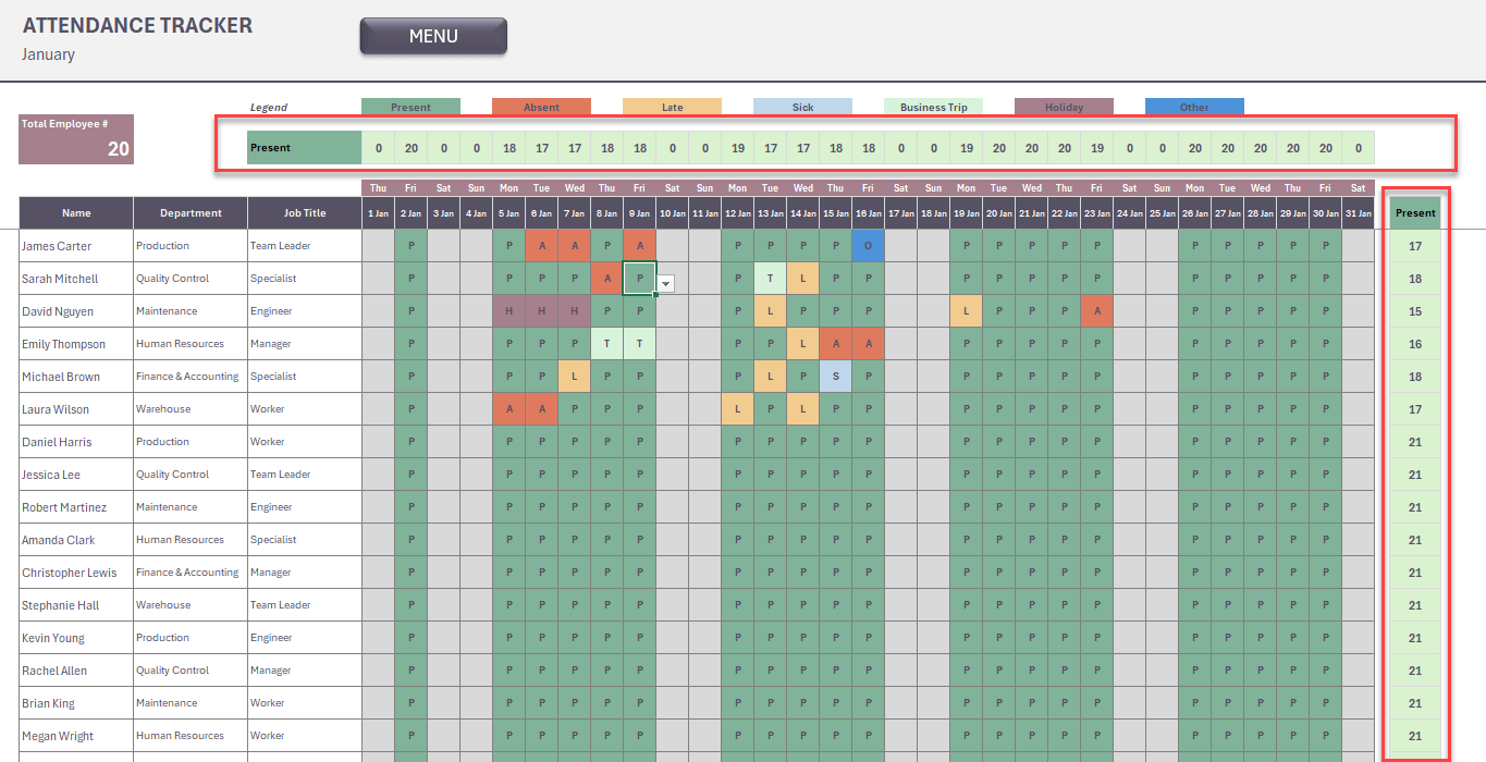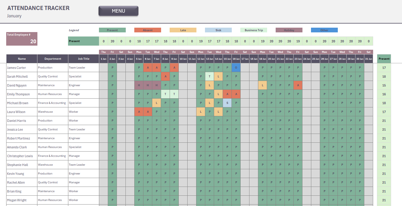If you manage a team of any size and need a single source of truth for attendance data, this template was built for you.