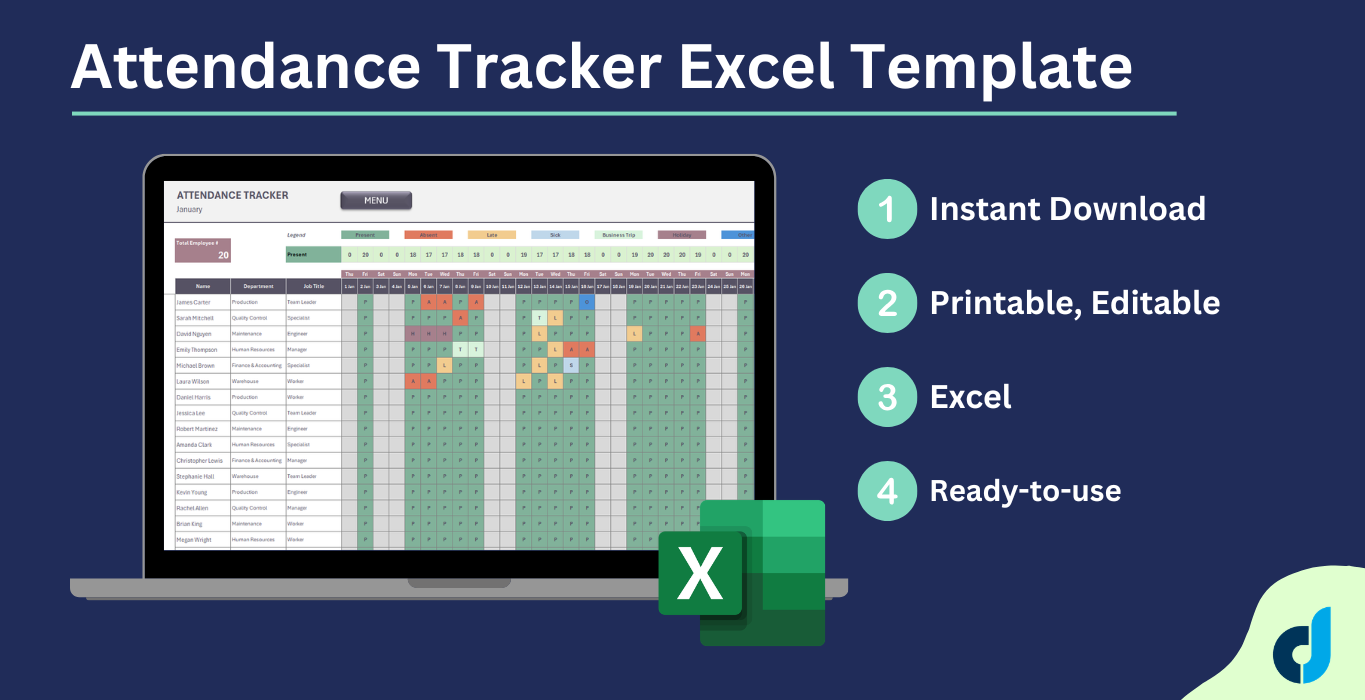 Stop managing attendance manually. One spreadsheet. Your entire team. The whole year. Attendance Tracker Excel Template.