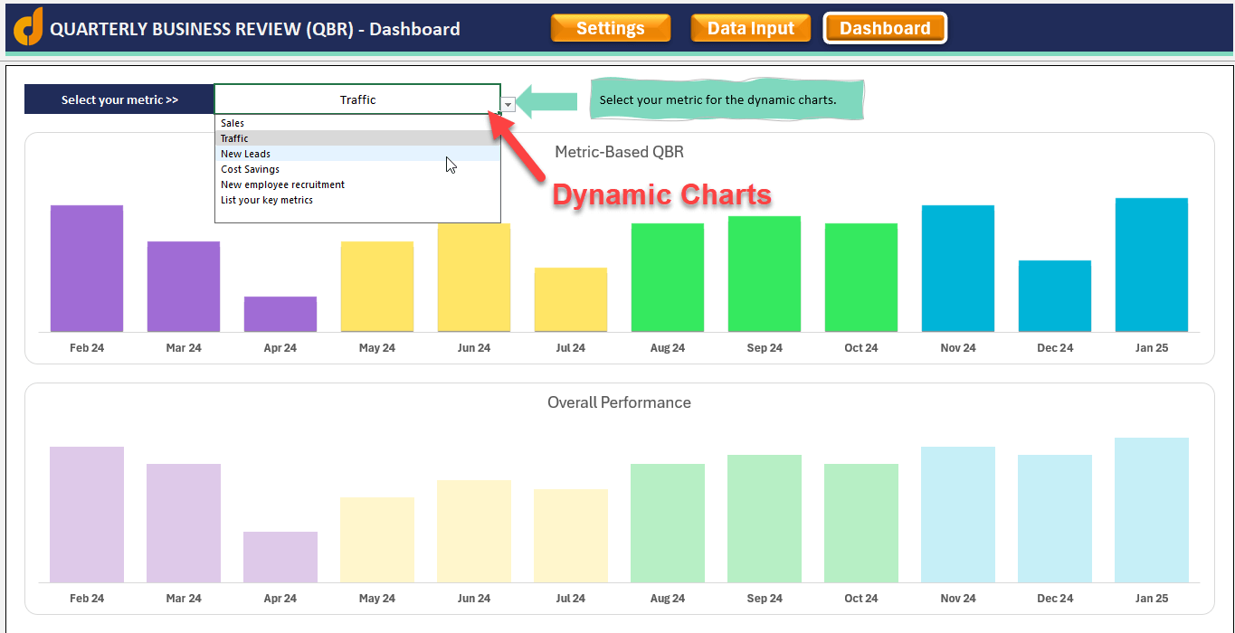 The second graph will display the overall performance numbers in your QBR Dashboard.